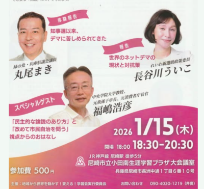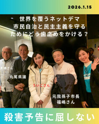 自分の素性も明らかにせずに、本当に殺害するのかどうかも分からない。一通のメールで「言論の自由が奪われる」ことに対して、屈しない姿勢を貫かれた福嶋さんを始め、主催者、他の議員のあり方には私も学ばせて頂きました。