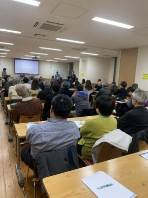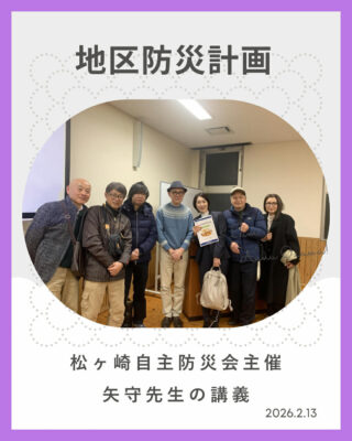 松ヶ崎自主防災組織が一年間かけて地区防災計画を作成しました。この取り組みを勉強させていただき本日が最終回でした。最終回には防災でも大変有名な京都大学教授矢守先生が私たちに大切なことを伝えてくださいました。向日市の市民防災士やミナソラメンバーと私たちも受講させていただきました。